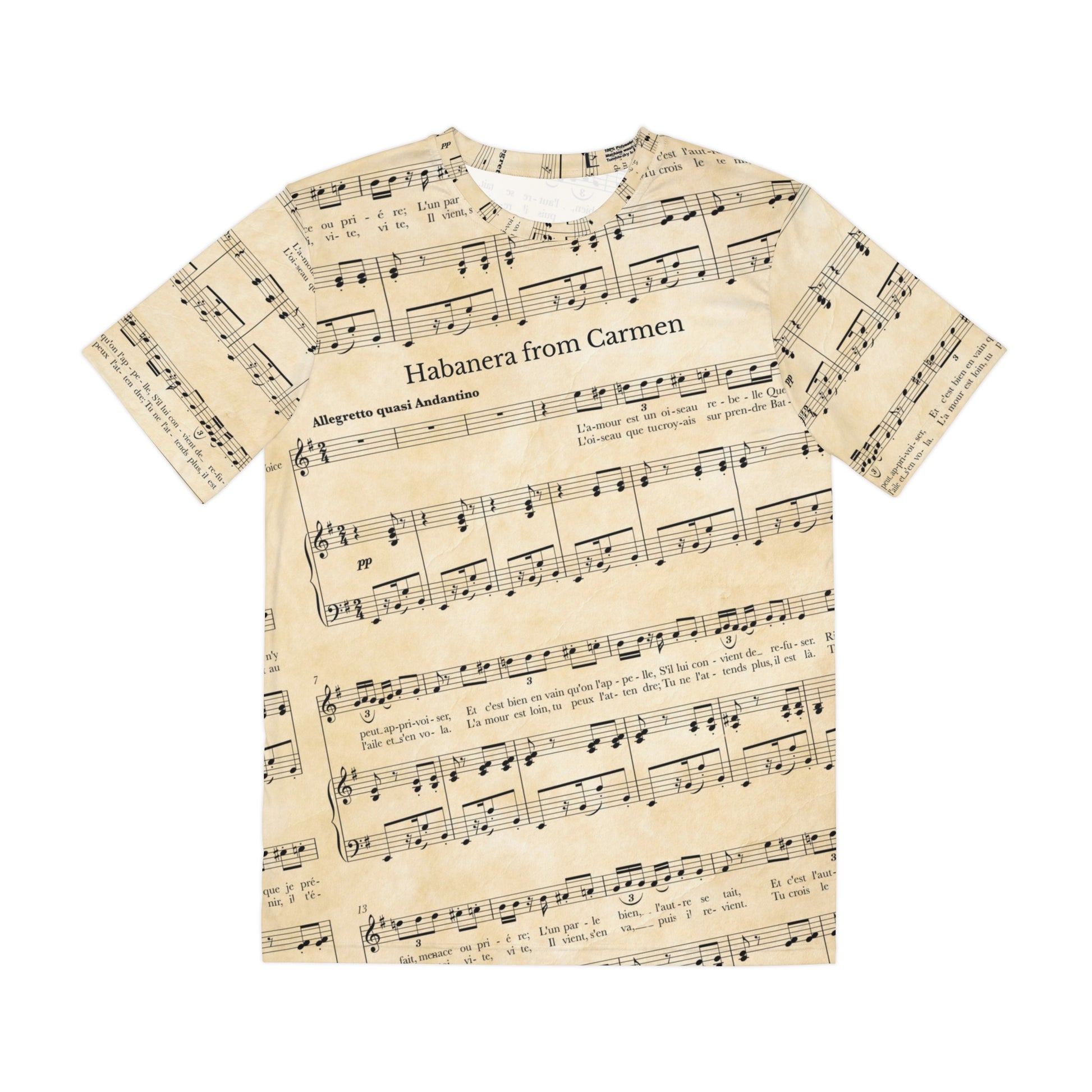 Unisex shirt featuring the Habanera music from Bizet's Carmen. It’s a meaningful gift for musicians, music lovers, singers and opera fans. Perfect for birthdays, holidays, or even just to celebrate your passion for music! This isn’t a basic cotton tee—it’s a custom-printed, high-quality garment designed for lasting comfort and bold style.