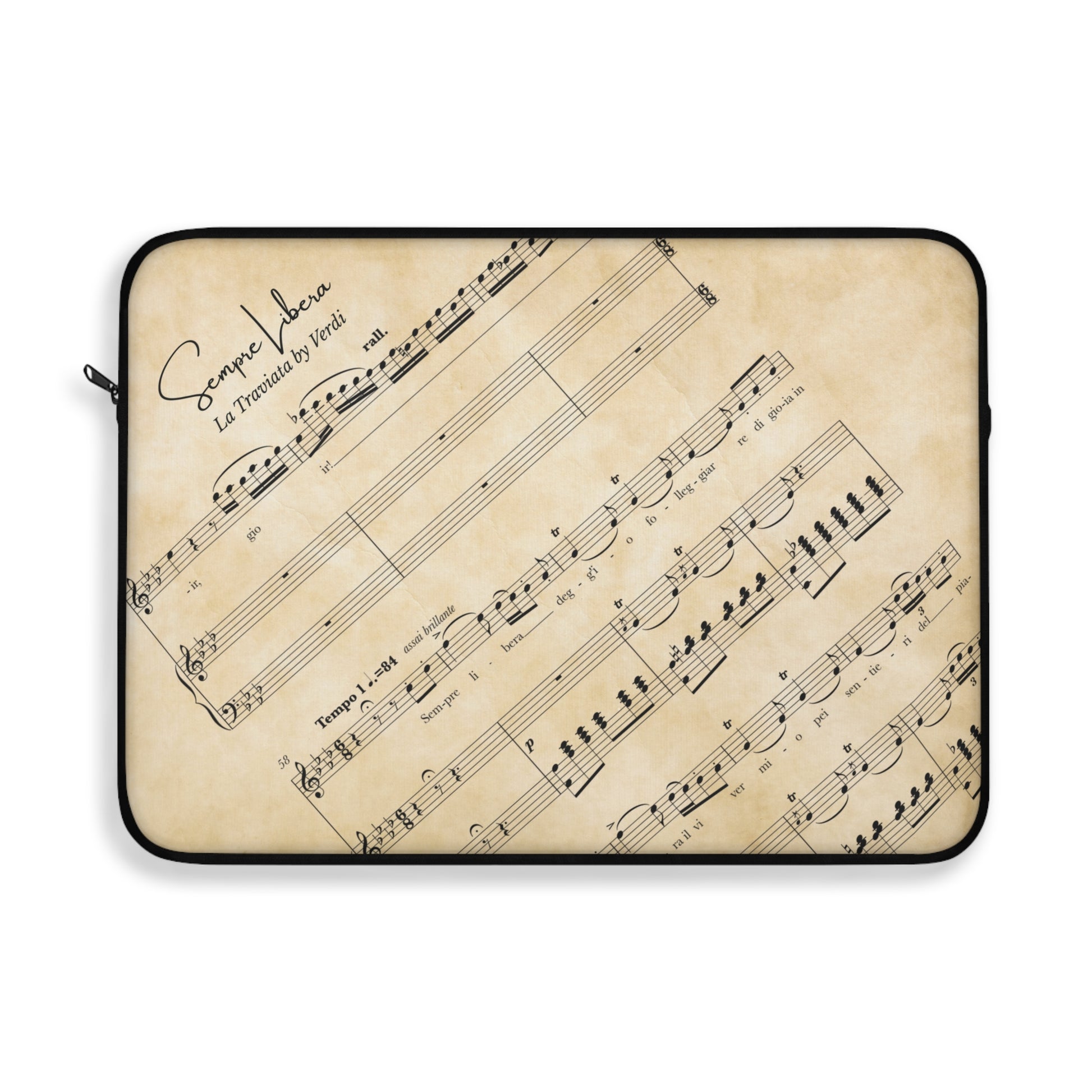 Express your passion for opera with this La Traviata design featuring Violetta's aria "Sempre Libera" sheet music! It's a striking accessory for the professionals or students. The lightweight feel adds convenience, while the plush fleece interior ensures your device remains safe and secure. Perfect for daily commutes, coffee shop visits, or workspace organization, this sleeve is designed to uplift your tech experience. A meaningful gift for opera fans! This product is a thoughtful gift for holidays, back-to-school events, or special occasions.
