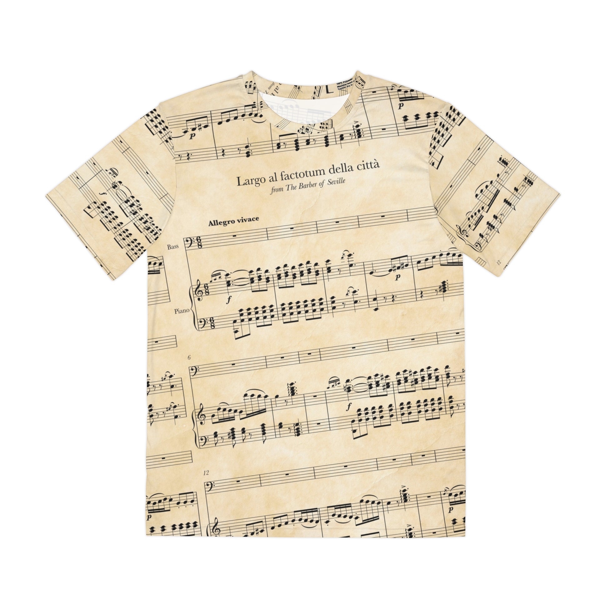 Unisex shirt featuring music from Rossini's Barber of Seville: "Largo al Factotum": It’s a meaningful gift for musicians, music lovers, singers and opera fans. Perfect for birthdays, holidays, or even just to celebrate your passion for music! This isn’t a basic cotton tee—it’s a custom-printed, high-quality garment designed for lasting comfort and bold style.