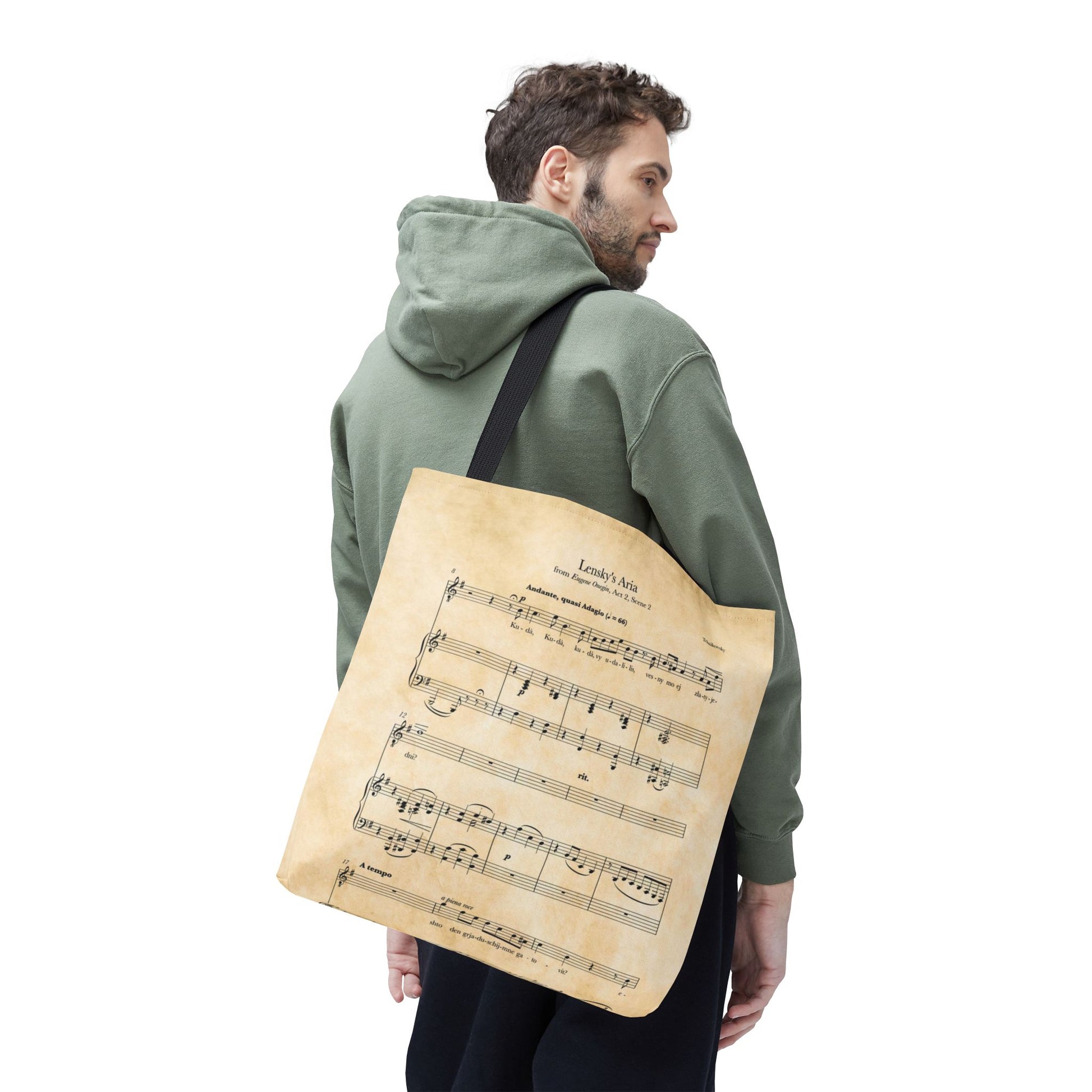 Express your opera passion with this tote bag featuring the music "Kuda, kuda, vi udalilis?" from Tchaikovsky's opera Eugene Onegin. Sheet music accents a parchment colored background. Perfect gift for any Puccini fan or opera lover on holidays and special occasions such as birthdays, graduations, and music festivals.