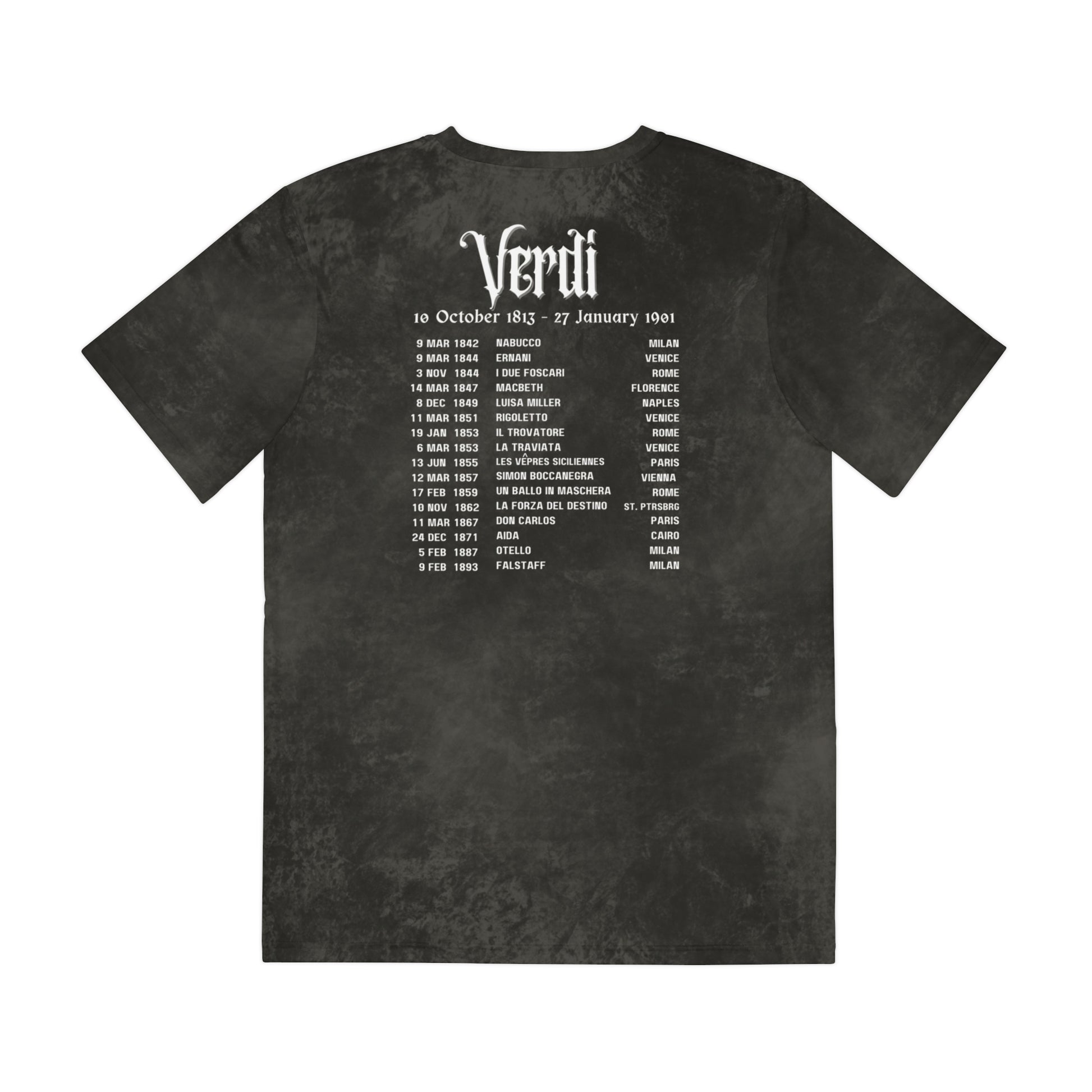 Unisex shirt featuring opening dates of popular Verdi operas. It’s a meaningful gift for musicians, music lovers, singers and opera fans. Perfect for birthdays, holidays, or even just to celebrate your passion for music! This isn’t a basic cotton tee—it’s a custom-printed, quality garment designed for lasting comfort and bold style.
